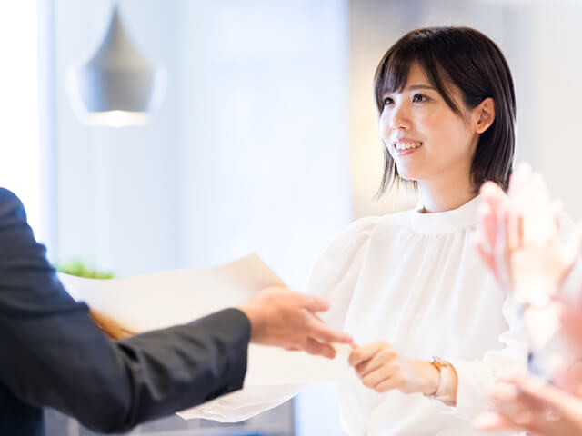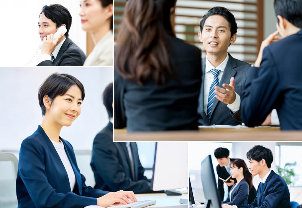 弊社では業務の分業化が進み1案件に対して3名ほどのスタッフがお客様の問合せ対応や事務処理などをサポート。フォローが充実しているからこそコア業務に集中でき、お客様のためにスピード感を持った対応が可能です。